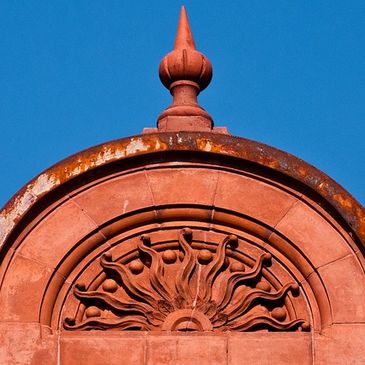 The fine red brick said to been imported from England, arrived with each brick wrapped separately in paper to keep it from being marred in shipping. The bricks were laid with a thin “buttered” joint using red mortar. This along with the red slate roof produced a distinctive red house on a heavily rusticated gray limestone base.